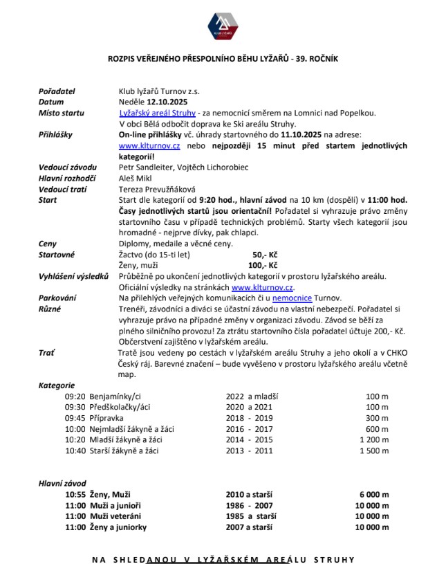 rok se s rokem sešel a my jsme si pro Vás opět přichystali další ročník přespolního běhu v krásném prostředí našeho Ski areálu.
