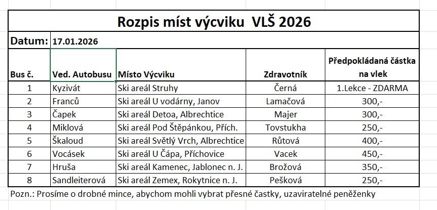 Informace před 1.lekcí VLŠ 2026